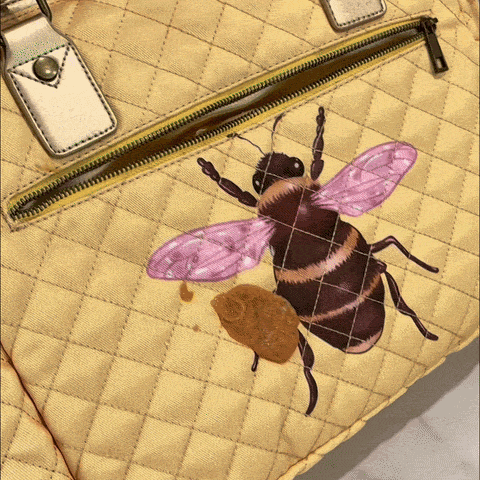Originally created artworks featuring cascading honeycombs, and the BubletCo Bzz Bee on both front and back