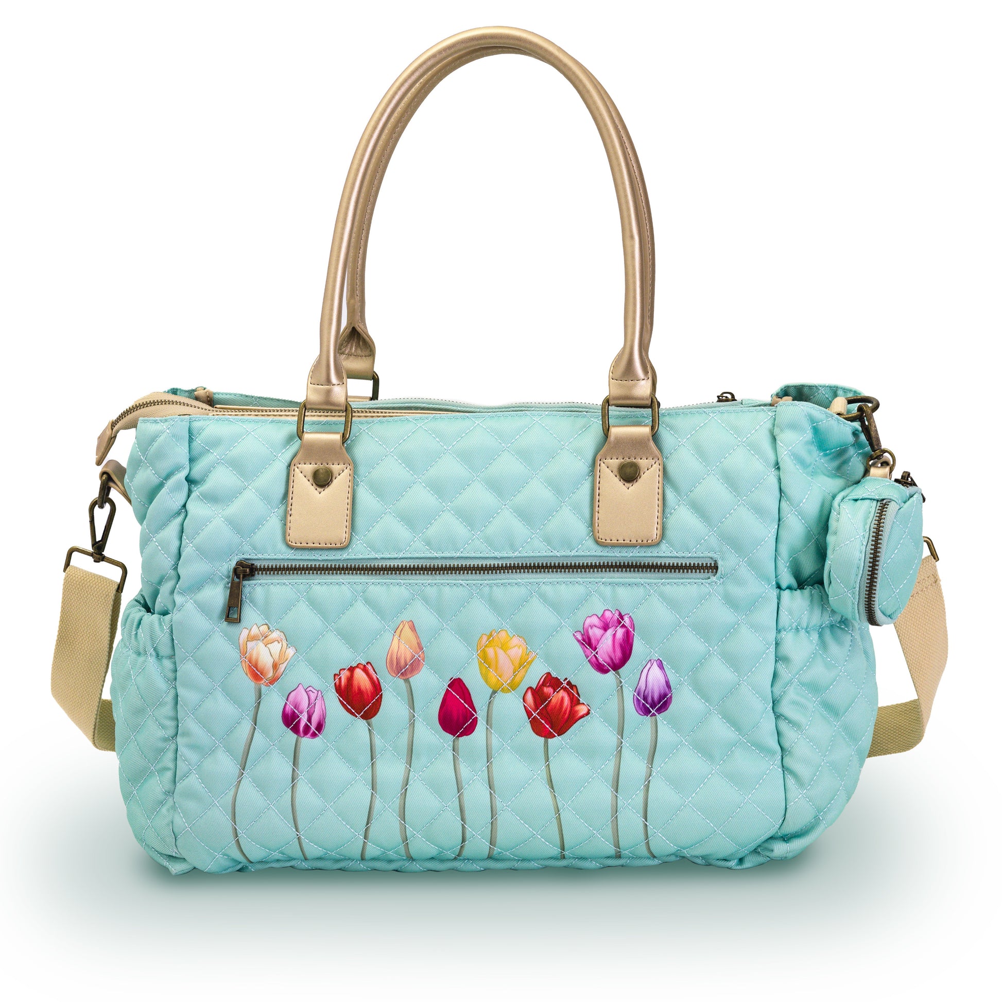 Tulip Flower Quilted Baby Nappy Tote Bag